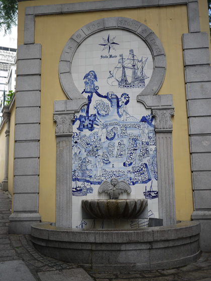 街のそこかしこにポルトガルタイルのアズレージョが。白に藍色のタイルが街を明るく見せていました。