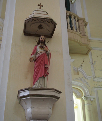 内部も壁の塗装が淡い黄色で可愛い教会でした。