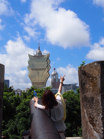 大砲の正面に見えるホテルリスボア。ひときわは目立っています。