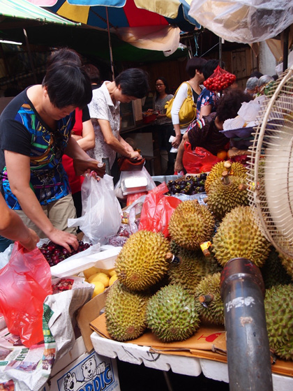 ドリアンを剥いて売っていました。
