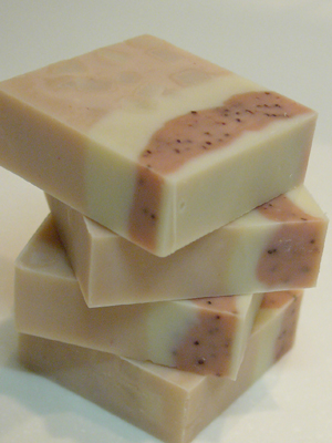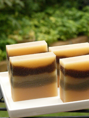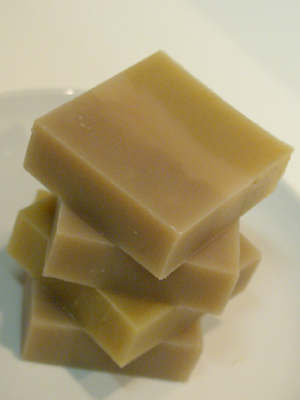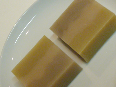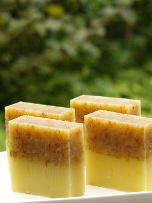 石けん上部にはカレンデュラを粉末にしたものとはちみつを混ぜ込みました。