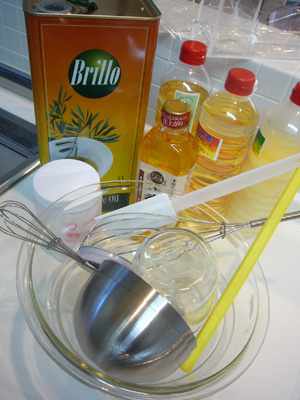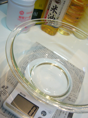 パームや、ココナッツのような固いオイルは湯煎で溶かしておく。
