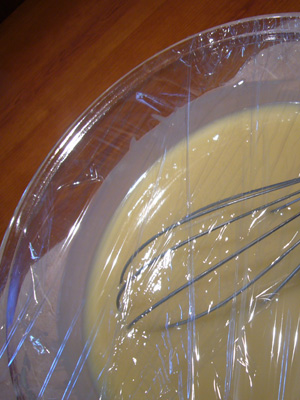 生地には、ラップをして時々混ぜながらその時を待ちます。